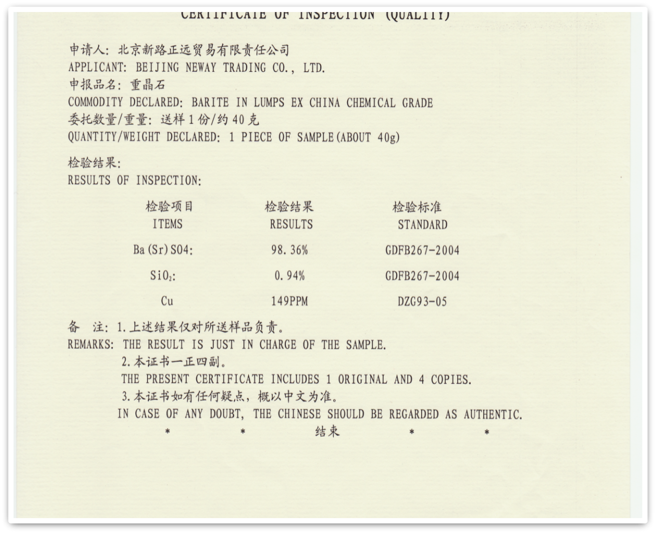 北京新路正遠(yuǎn)貿(mào)易有限責(zé)任公司成立于2002年8月,一直以來(lái)從事非金屬礦產(chǎn)品的出口業(yè)務(wù),產(chǎn)品主銷歐日韓等國(guó),在國(guó)際用戶中贏得了良好聲譽(yù)。多年來(lái),我司重晶石塊和重晶石粉的出口質(zhì)量非常穩(wěn)定,以其獨(dú)特的產(chǎn)品特點(diǎn)深受用戶信賴,同時(shí)我們?cè)诮饕灿虚L(zhǎng)期合作的陶瓷原料加工廠,瓷土,鉀長(zhǎng)石,鈉長(zhǎng)石等也深得用戶好評(píng)。近年來(lái)在國(guó)家環(huán)保政策的指導(dǎo)下,礦山良性發(fā)展,有序開(kāi)采,狠抓質(zhì)量,我們的產(chǎn)品又有了進(jìn)一步提升,疫情